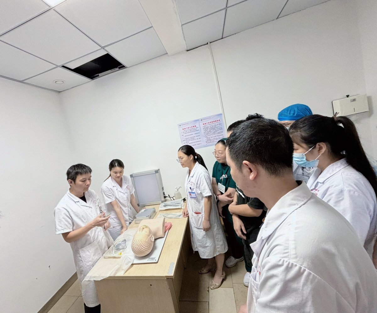 随后,长沙市第三医院急诊重症党支部宣传委员、急诊医学科主治医师谢超胜进行气管插管的业务培训,从气管插管的理论到实操进行了详细的讲解和操作示范,对插管的操作要领以及注意事项给予了实时提醒。