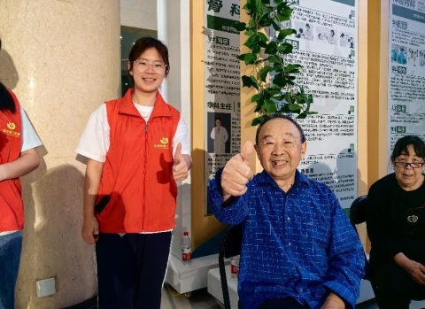 一位老人激动地说:“住院期间剪头发不方便,你们这个活动真好啊,感谢爱心人士和医护人员!”