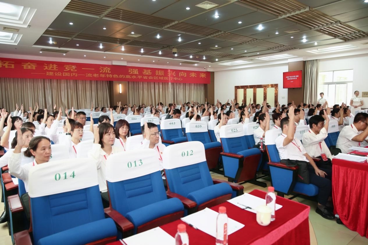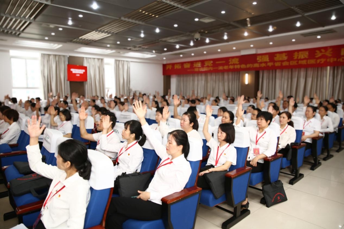 大会强调,今后五年,全院干部职工要坚持以习近平新时代中国特色社会主义思想为指导,深入学习党的二十大和二十届三中全会精神,全面贯彻落实习近平总书记关于卫生健康工作重要论述精神,全面加强党的领导,把牢医院发展政治方向,以人民健康为中心,锚定“建设特色鲜明、面向未来、人民满意的高水平省会区域医疗中心”愿景,奋力谱写医院高质量发展的新篇章。