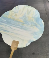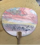 在接下来的“手作时间”,大家围坐一团,动手制作漆扇。选扇面、挑颜料,将颜料滴入水面,搅动之后将扇子旋转着浸入水中后再拿起,一把把色彩斑斓的漆扇在大家手中悄然完成。扇面颜色或淡雅或鲜艳,充满了想象力和创造力,新进人员纷纷在扇面上写下内心的感悟和对未来的期许,相互展示着自己的作品,分享创作心得,现场充满了欢声笑语。