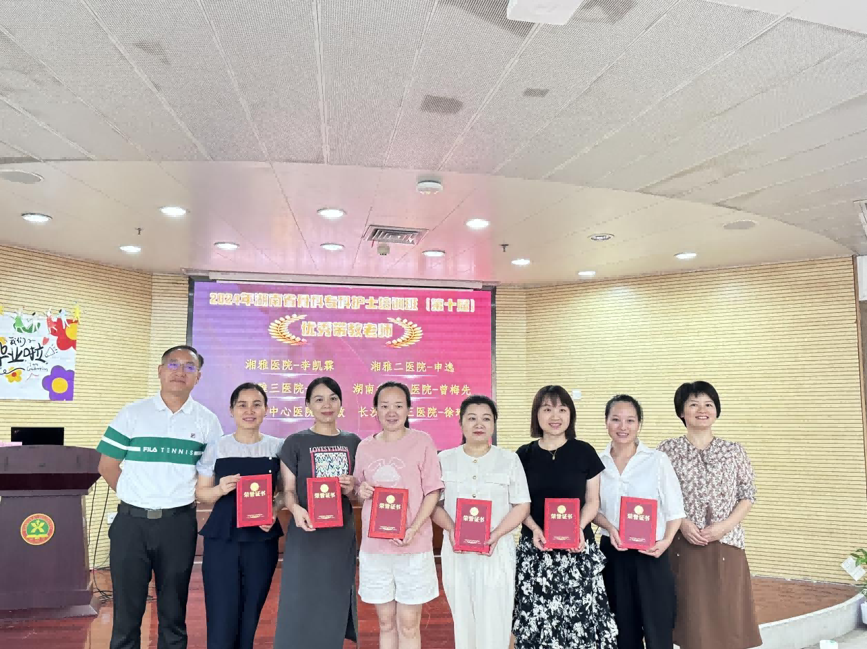 ▲骨科主管护师徐玲(右四)获评“2024年湖南省骨科专科护士培训班(第十届)优秀带教老师”
