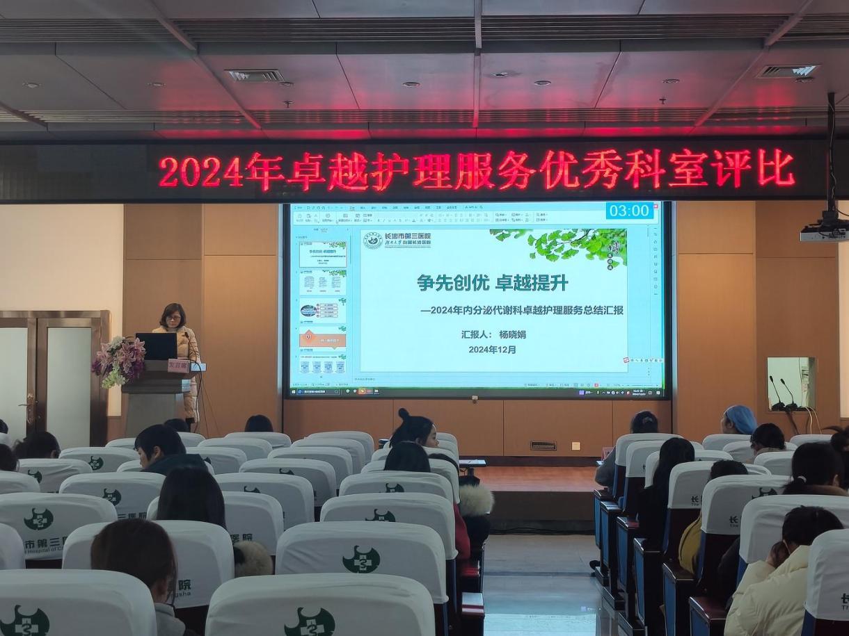 为改善就医感受,提升患者体验,推进卓越服务,12月23日,长沙市第三医院(湖南大学附属长沙医院)举办2024年卓越护理服务优秀科室评比汇报会。会议由护理部主任吴俊琪主持。
