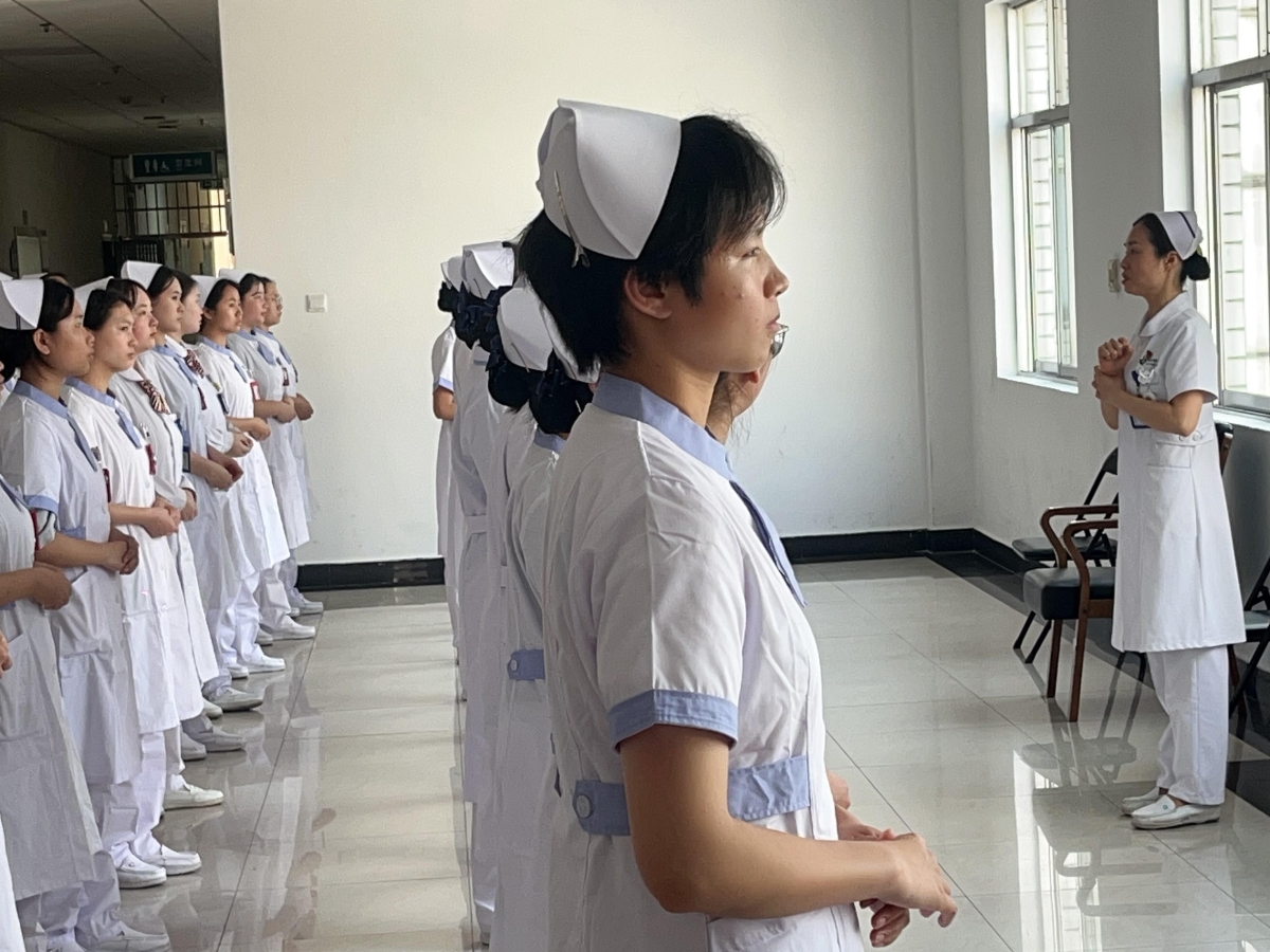 岗前培训的实践环节则注重技能与人文的融合。新病人接待流程演练,借助 “标准化病人”,精准完成接诊流程和操作;责任护士工作流程课堂采取的“双人核查+模拟操作+导师纠错”形式,进一步强化了操作技能学习;礼仪培训采用理论+形体双模块教学,从理论到形体训练,提升了实习生的服务素养。