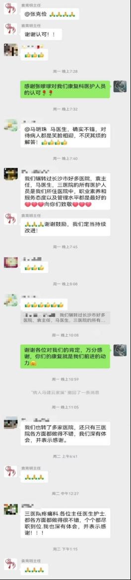 患者的每一点进步,每一句认可,都是科室坚持的最大动力。长沙市第三医院康复医学科始终坚持“精准评估、个性化中西医结合治疗”的康复理念,依托专业的医疗团队与先进的康复设备,为各类慢性疼痛及神经康复患者提供科学、高效的治疗方案,用专业与温度帮助更多患者摆脱病痛困扰,重启健康人生。