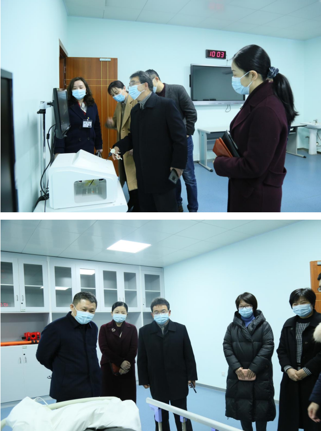 专家一行还参观了医院临床技能培训中心,听取科教科科长聂玥对培训中心基本情况及OSCE(客观结构化临床技能考试)考核运行情况的介绍。