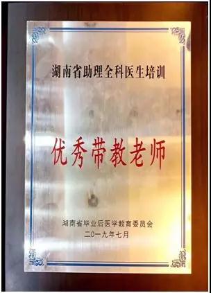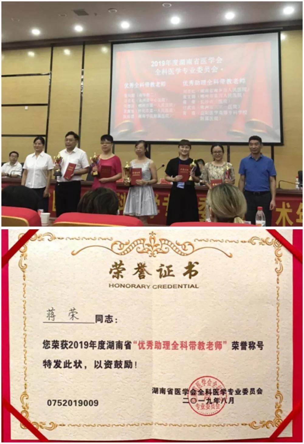 妇产科副主任蒋荣荣获2019年度湖南省“优秀助理全科带教老师”称号