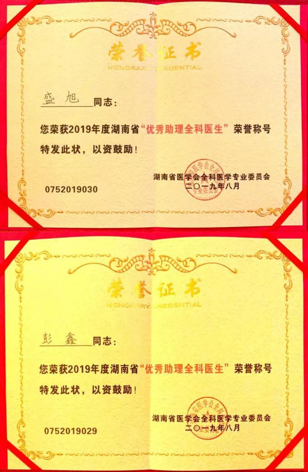 2018级助理全科医生培训学员彭鑫、盛旭获2019年度湖南省“优秀助理全科医生”称号