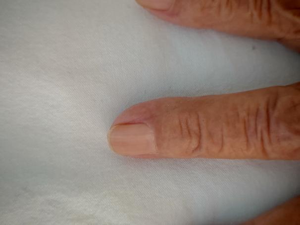 ▲患者甲床表现为苍白色