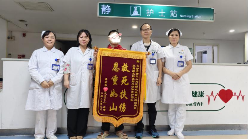 从医联体单位院前快速识别、转运,到长沙市第三医院心肺复苏、精准介入治疗,再到重症医学科的后续支持,每一个环节都紧密相连、环环相扣,长沙市第三医院胸痛中心与医联体单位之间成熟完善的转运机制和多学科之间的无缝协作为救治成功奠定了坚实的基础。