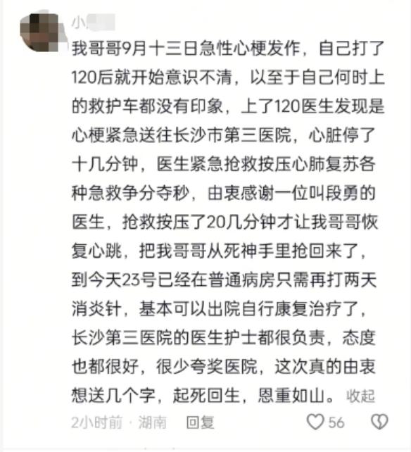 “感谢三医院医护人员不放弃、争分夺秒地从鬼门关前抢救生命……起死回生,恩重如山!”匆匆赶到的家属在得知男子两度心跳骤停、最终抢救成功后感激不已,通过多种渠道向医护人员表达感谢。