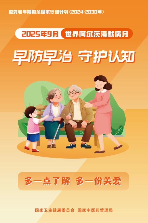 每年9月为世界阿尔茨海默病月,今年的活动主题是“早防早治,守护认知”,旨在引导全社会共同参与,提高公众对老年期痴呆的科学认识,增强早发现早诊断早干预的意识,营造关心关爱痴呆老年人的社会氛围。