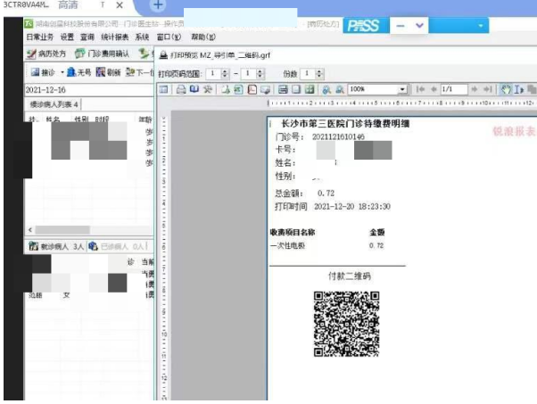 2、医生根据患者情况在电脑上开具门诊处方单,系统将处方单信息生成微信/支付宝付款二维码;