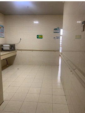 ▲病房内卫生间门口增设扶手,舒适握感,结实防撞,老年人经过时可撑扶,更安全。