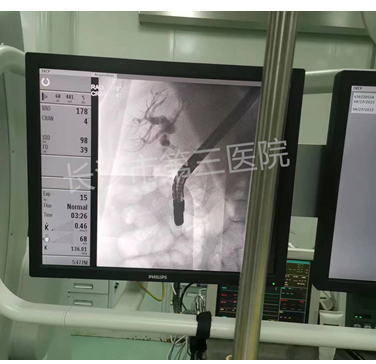 这么大年纪、这么多毛病,怎么能受得了开腹手术咯!”家属万分焦虑。 针对邹爹爹的情况,消化内科请普通外科、心血管内科会诊协助评估患者病情,并多次进行讨论,制定了个性化治疗方案:在十二指肠镜下行胆管造影(ERCP)及胆总管金属支架置入术,微创解决胆总管梗阻,避免胆道梗阻所致肝功能衰竭。 治疗方案得到了家属的认同。 4月27日下午,消化内科副主任刘跃辉和马曦在稳定心功能、全程严密生命体征监测下,为邹爹爹实施十二指肠镜下胆管造影及胆总管金属支架置入术,仅用时30分钟顺利解决胆道梗阻,引流出大量白色胆汁及脓性分泌物。