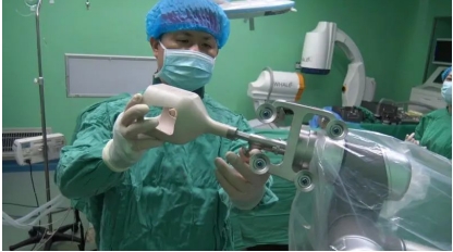 刘峰和骨科团队经过会诊讨论,制定了在骨科手术机器人的辅助下进行微创骨折复位固定的手术方案;术中,骨科团队根据患者骨折移位特点进行手术设计,手术机器人根据设计方案,仅通过一个0.4厘米大小的切口,“快、稳、准”地对骨折实施了置钉固定。仅用时30分钟的手术非常成功,骨折解剖复位,几乎无出血。