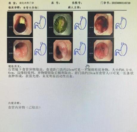 医疗团队在胃镜直视下精准操作,最终成功将鸡骨完整取出。术后,王先生咽喉部不适感即刻缓解,目前已无大碍。