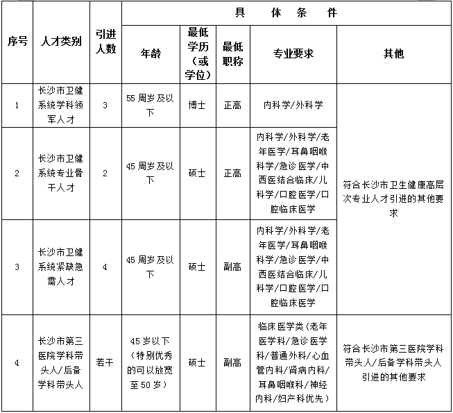 为进一步落实医院“十四五”人才建设发展规划,加强医院人才队伍建设,优化人才队伍结构,根据上级有关文件精神,结合医院实际,现面向社会公开引进长沙市卫生健康高层次专业人才、医院学科带头人/后备学科带头人,诚聘英才,“职”为你来。现将有关事项公告如下: