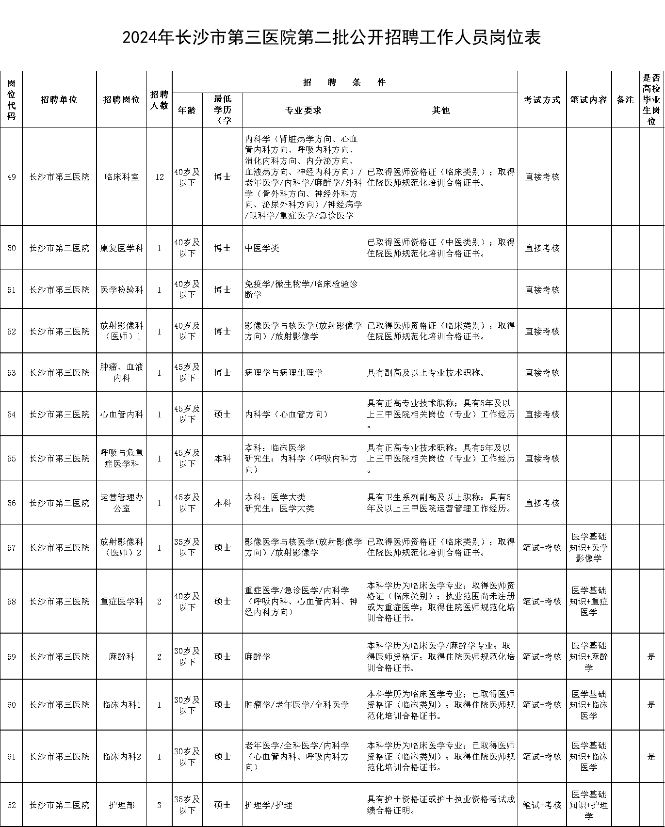 2024年长沙市第三医院第二批公开招聘工作人员简章